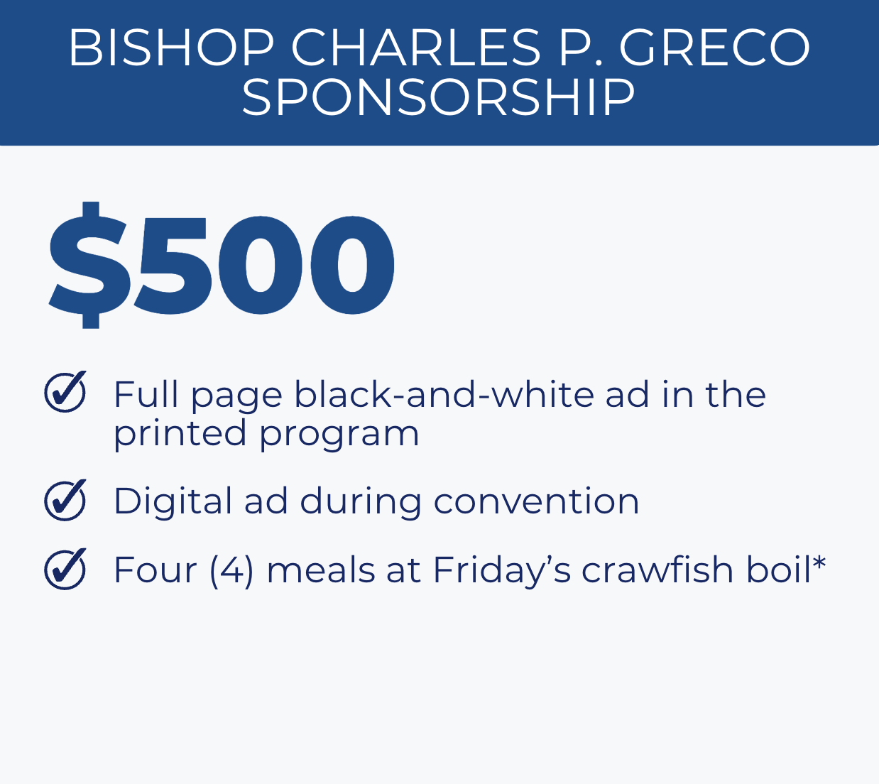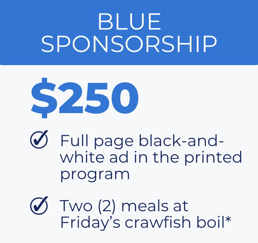 Join us on Friday, which begins with our Memorial Mass, the Successes of Louisiana presentation, followed by the very popular crawfish boil social.